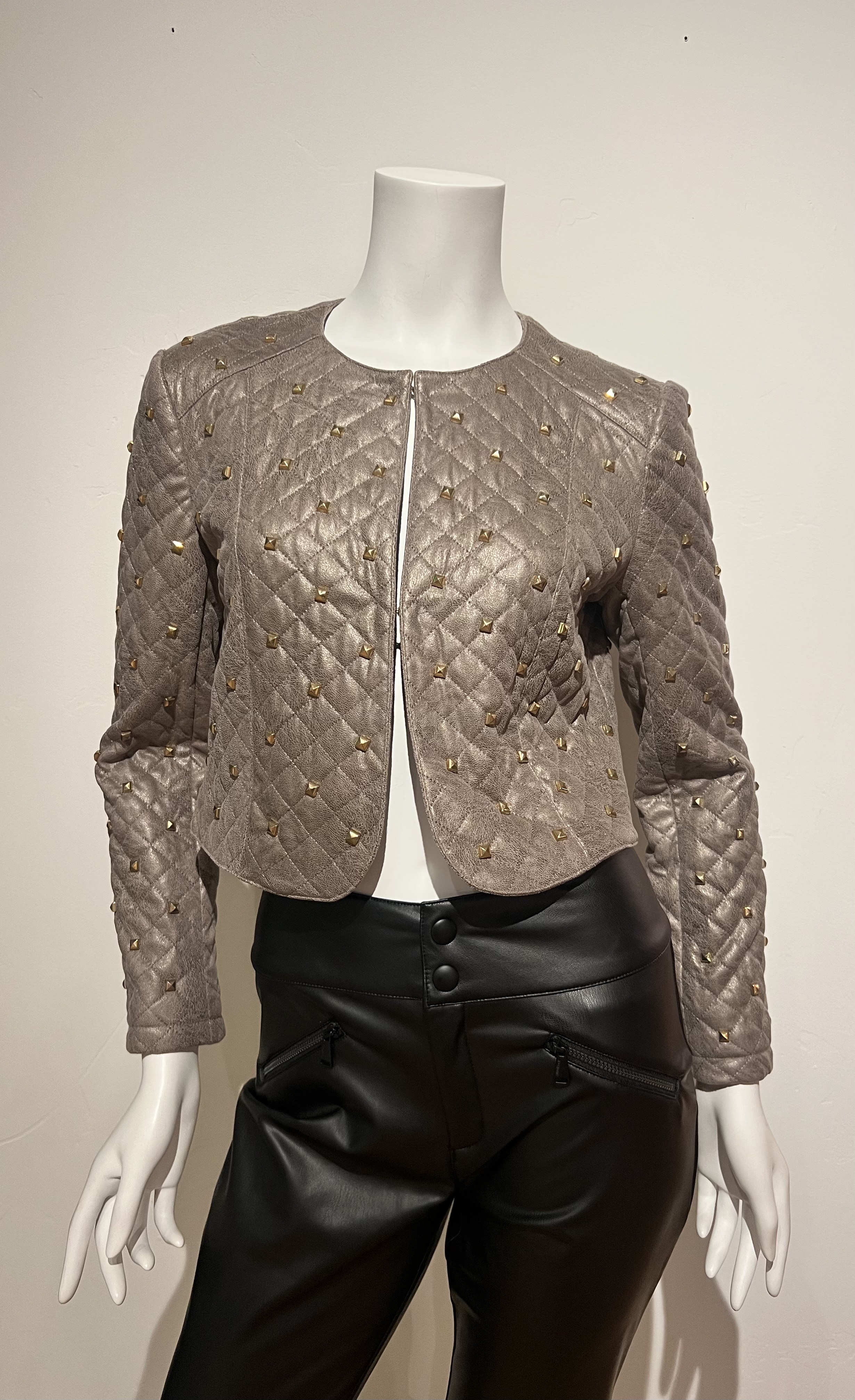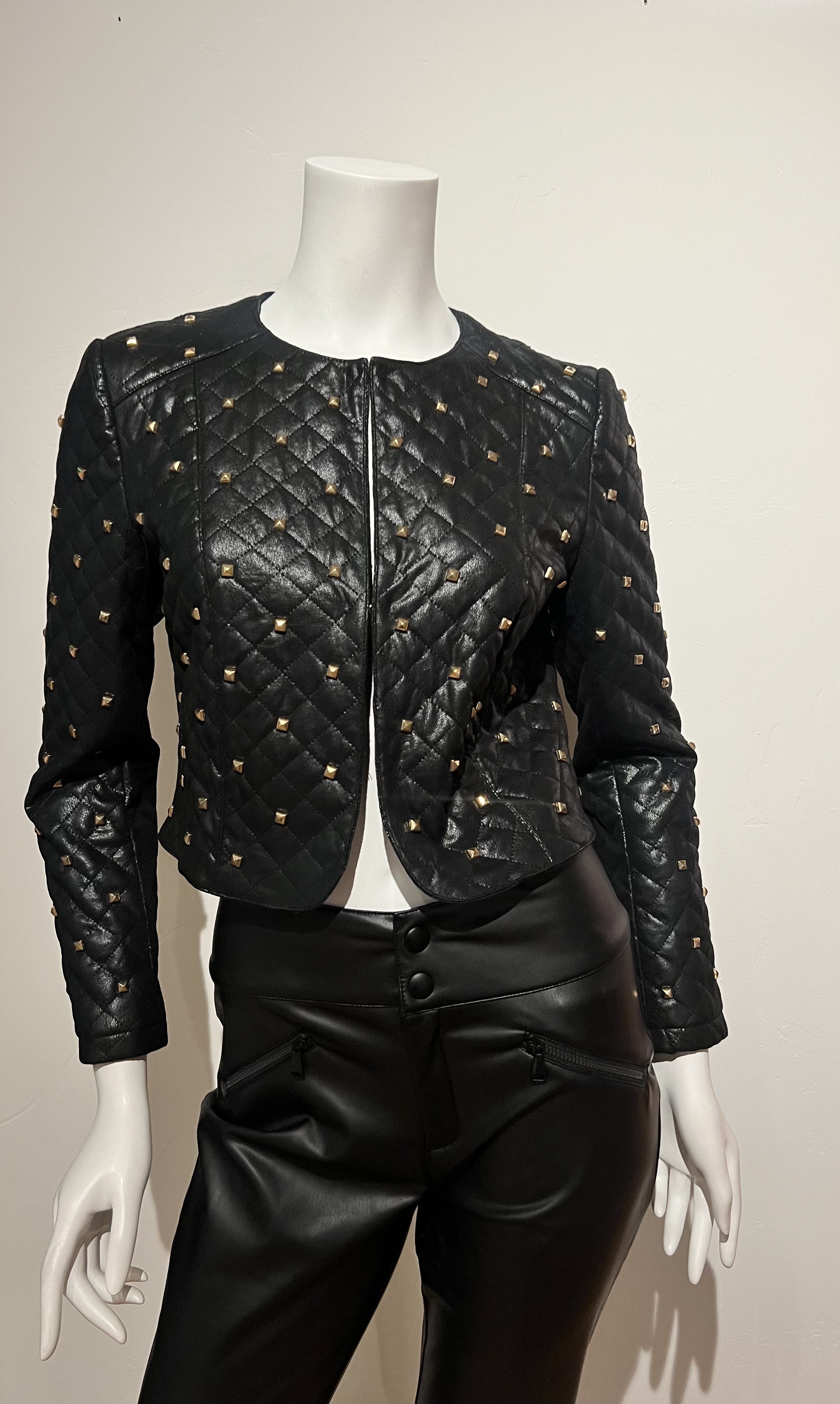 Faux leather short gold studded jacket...This jacket will elevate any outfit