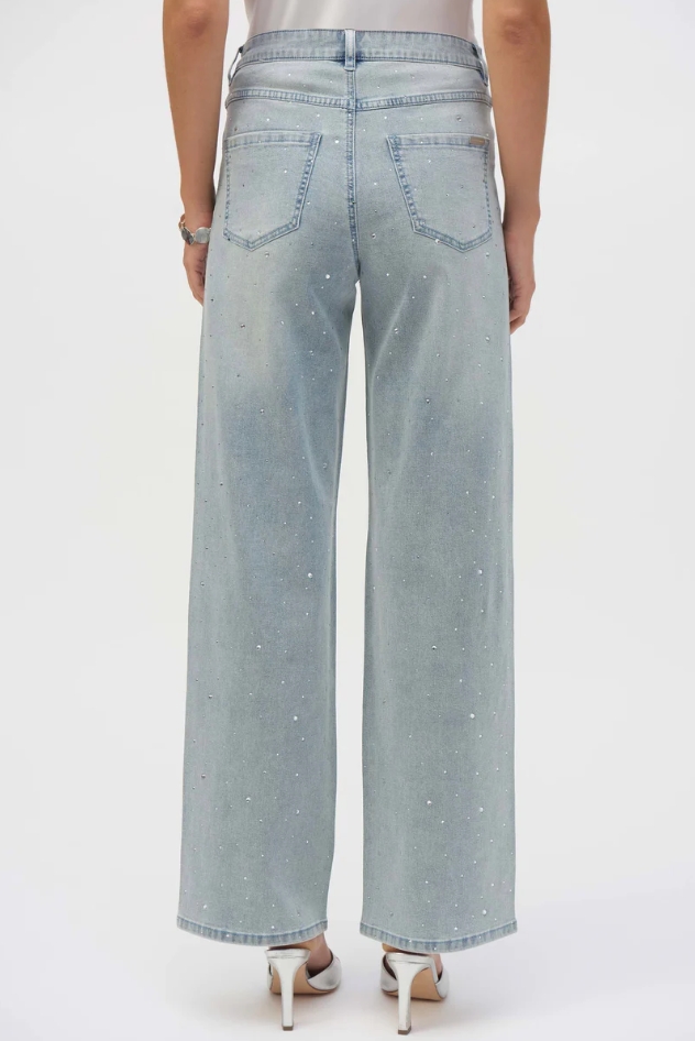 The Gayle jean is a wider leg with different sizes of crystals throughout the jean.... a little glitter!