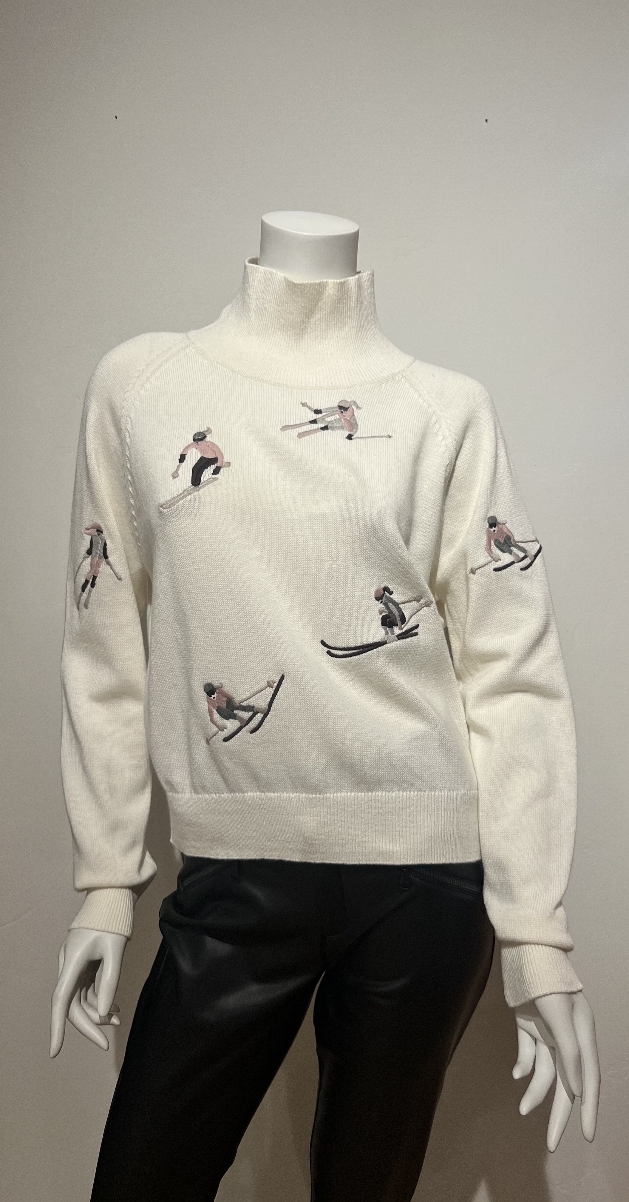 Belle is a cotton mock sweatshirt with embroidered lady skiers...perfect apres ski sweater!