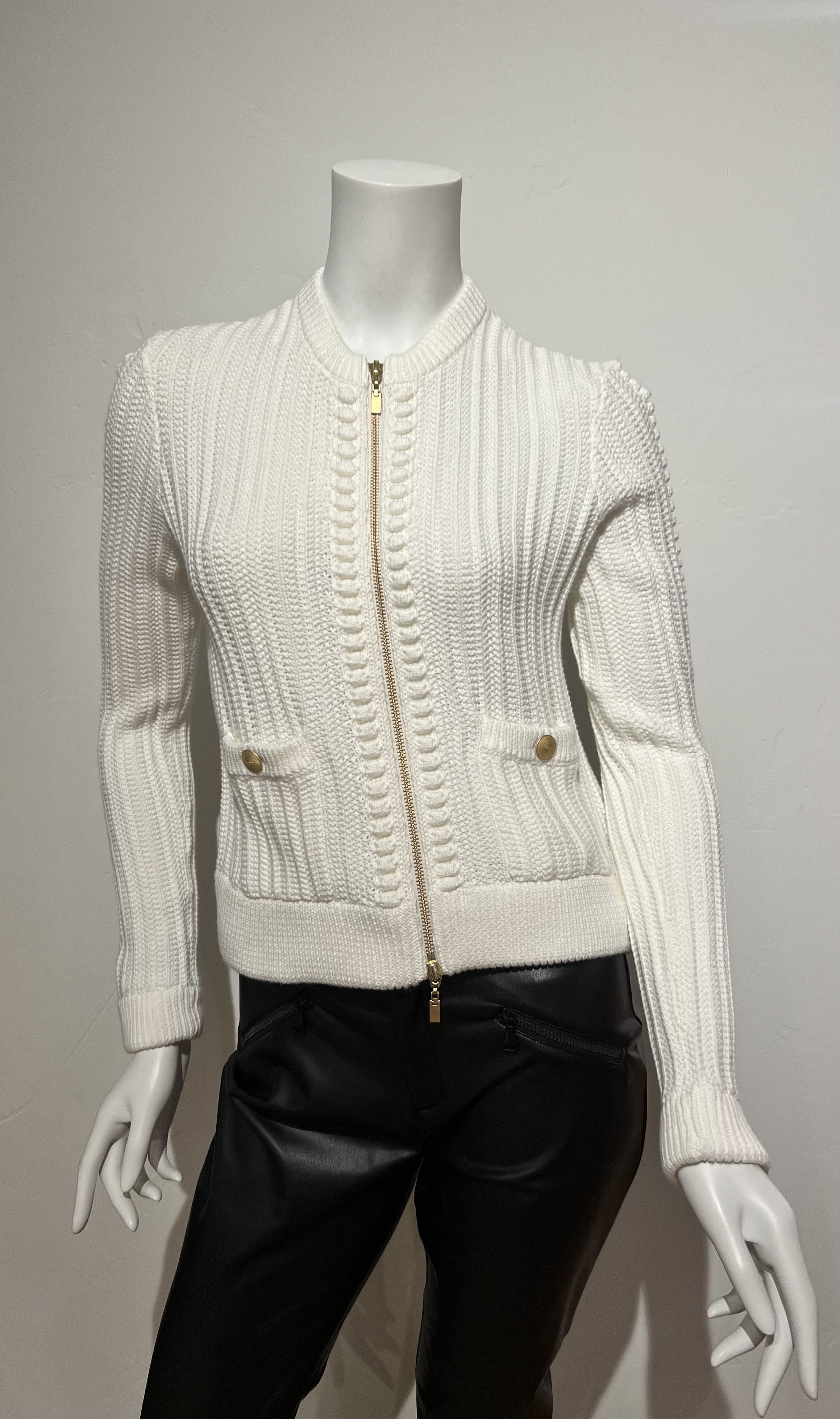 Cotton textured fitted zip cardigan