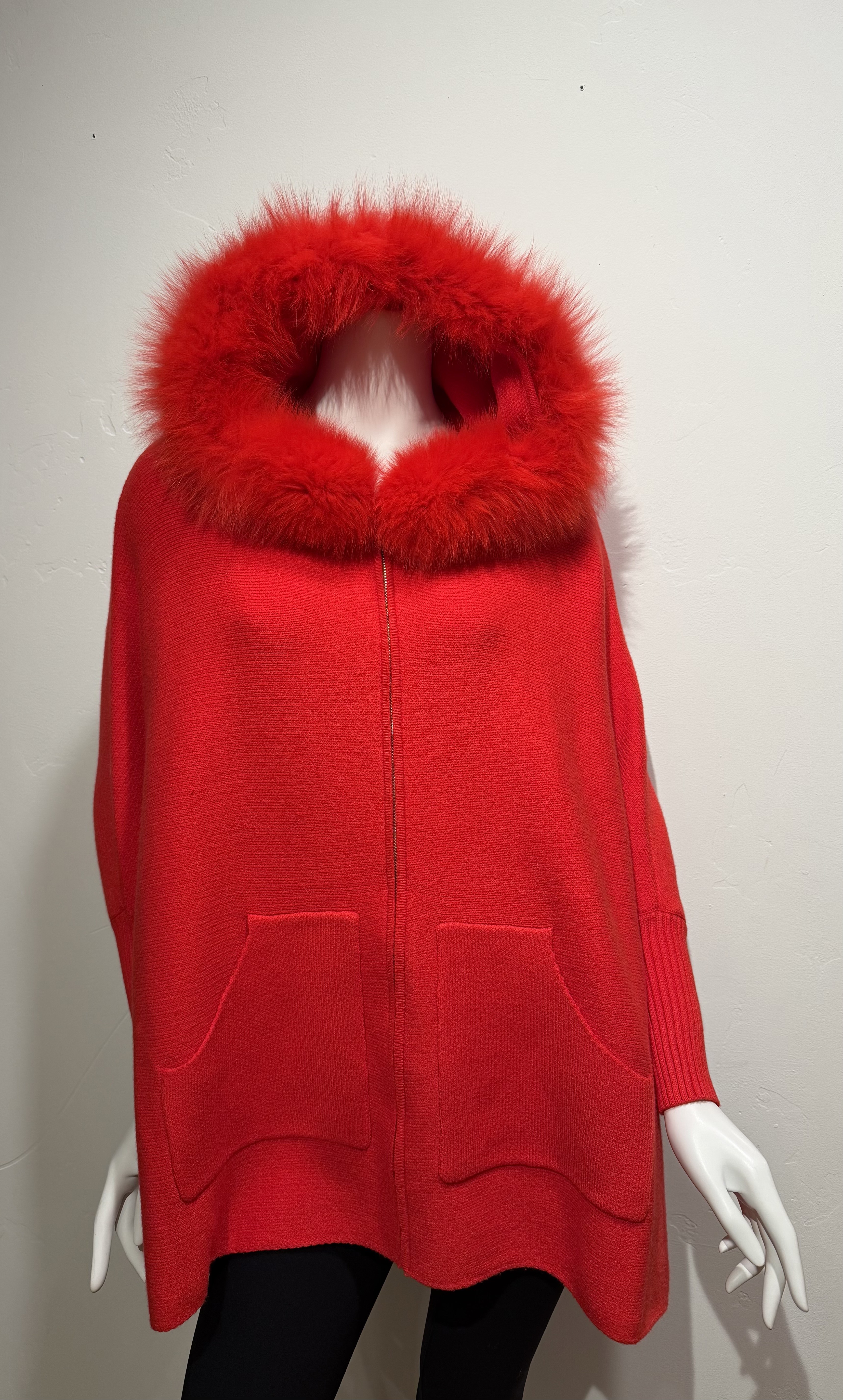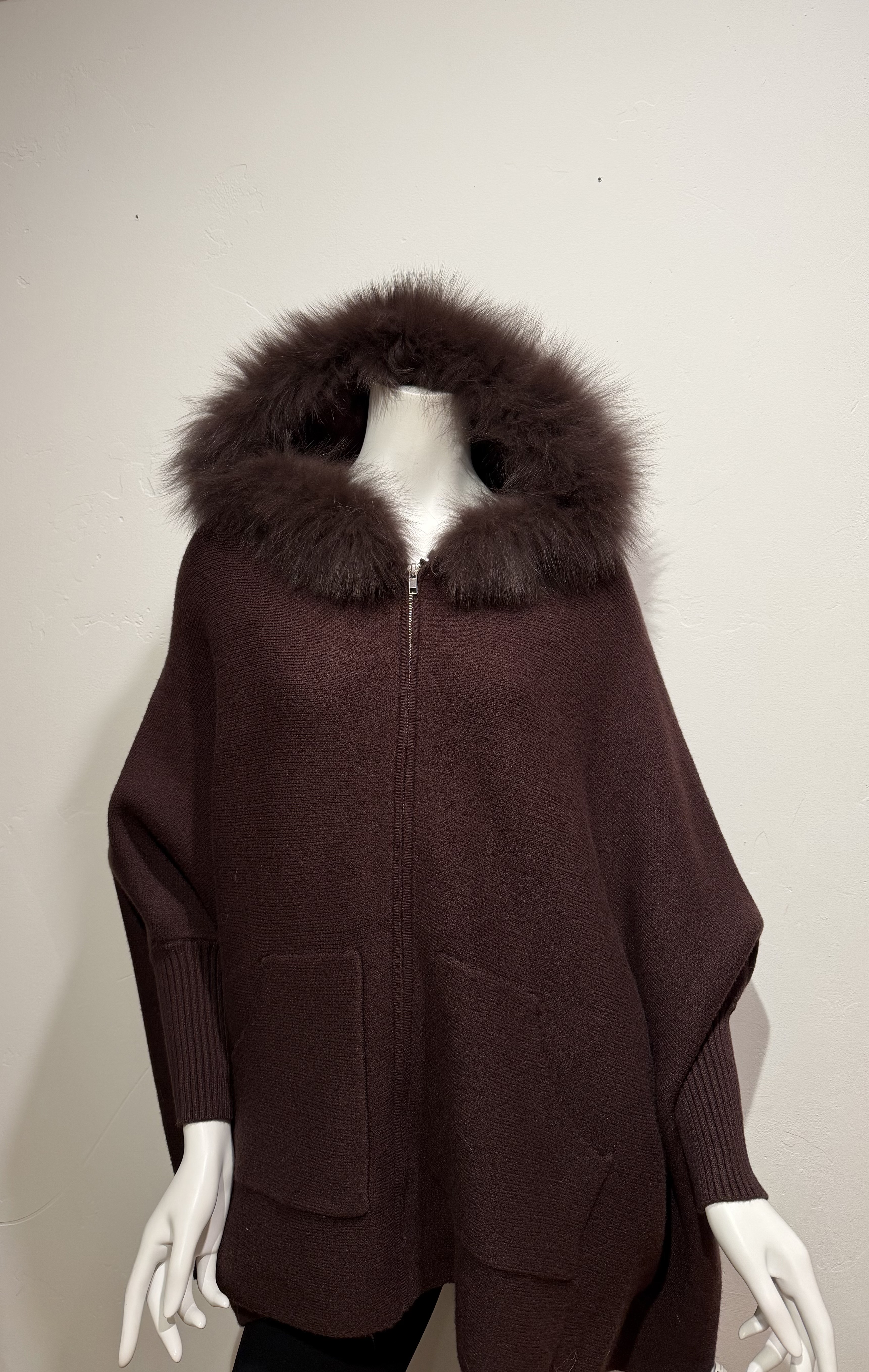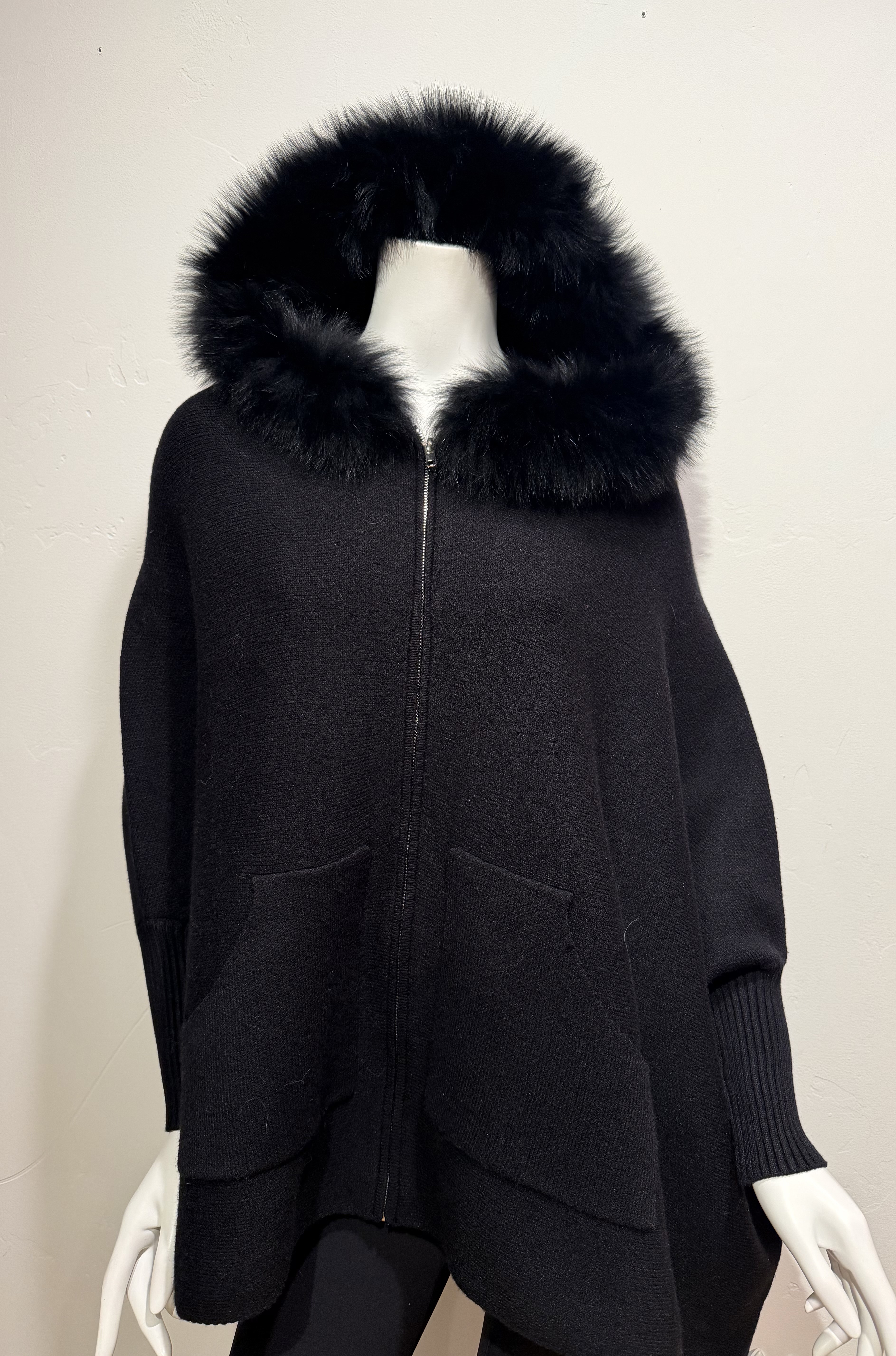 Ladies Fashions / ladies sportwear / solid sweaters / ZIP FRONT POCKET PONCHO