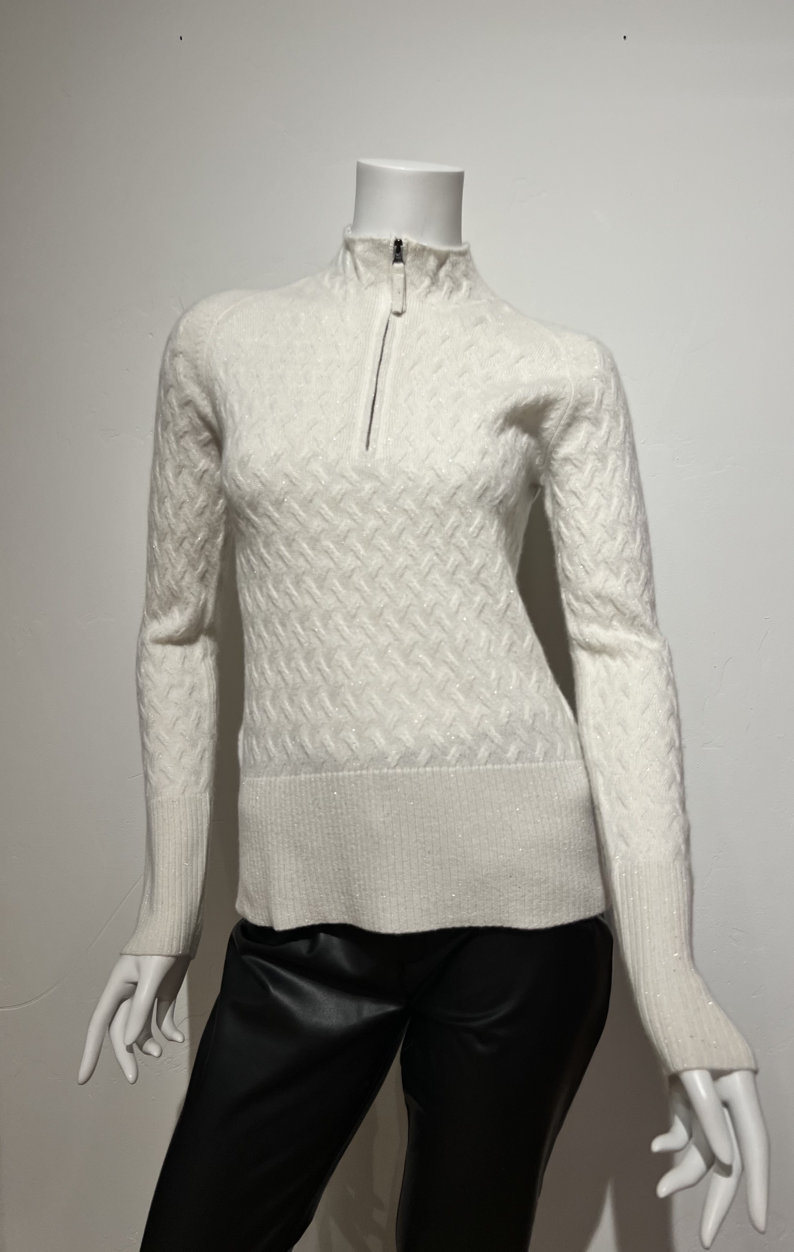 Cashmere blend zip cable sweater with a hint of glitter