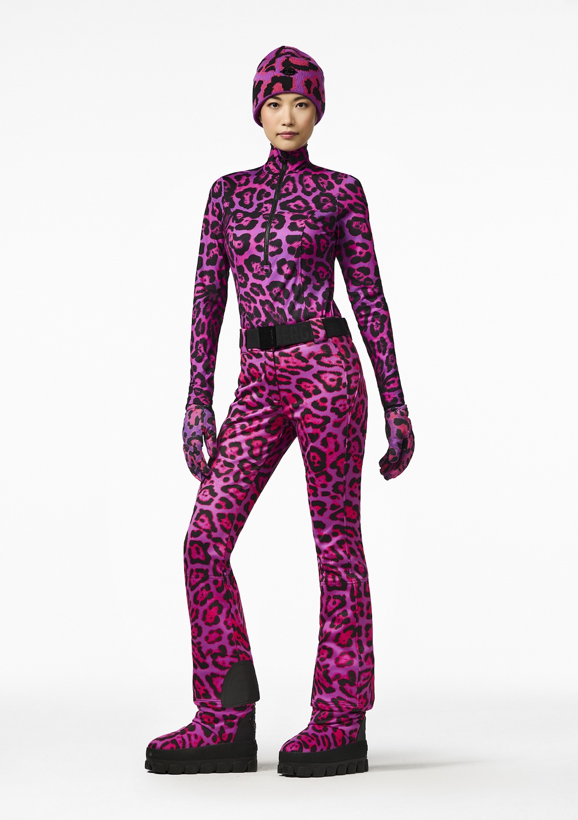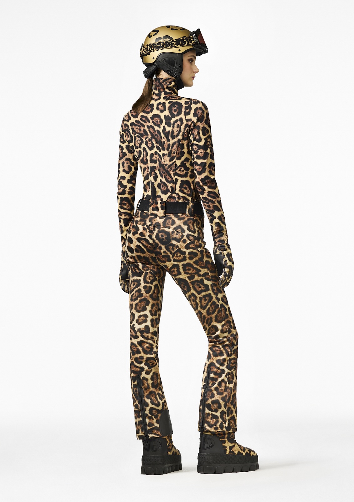 The Leona is a technical first layer turtleneck in the jaguar print with a long front zipper