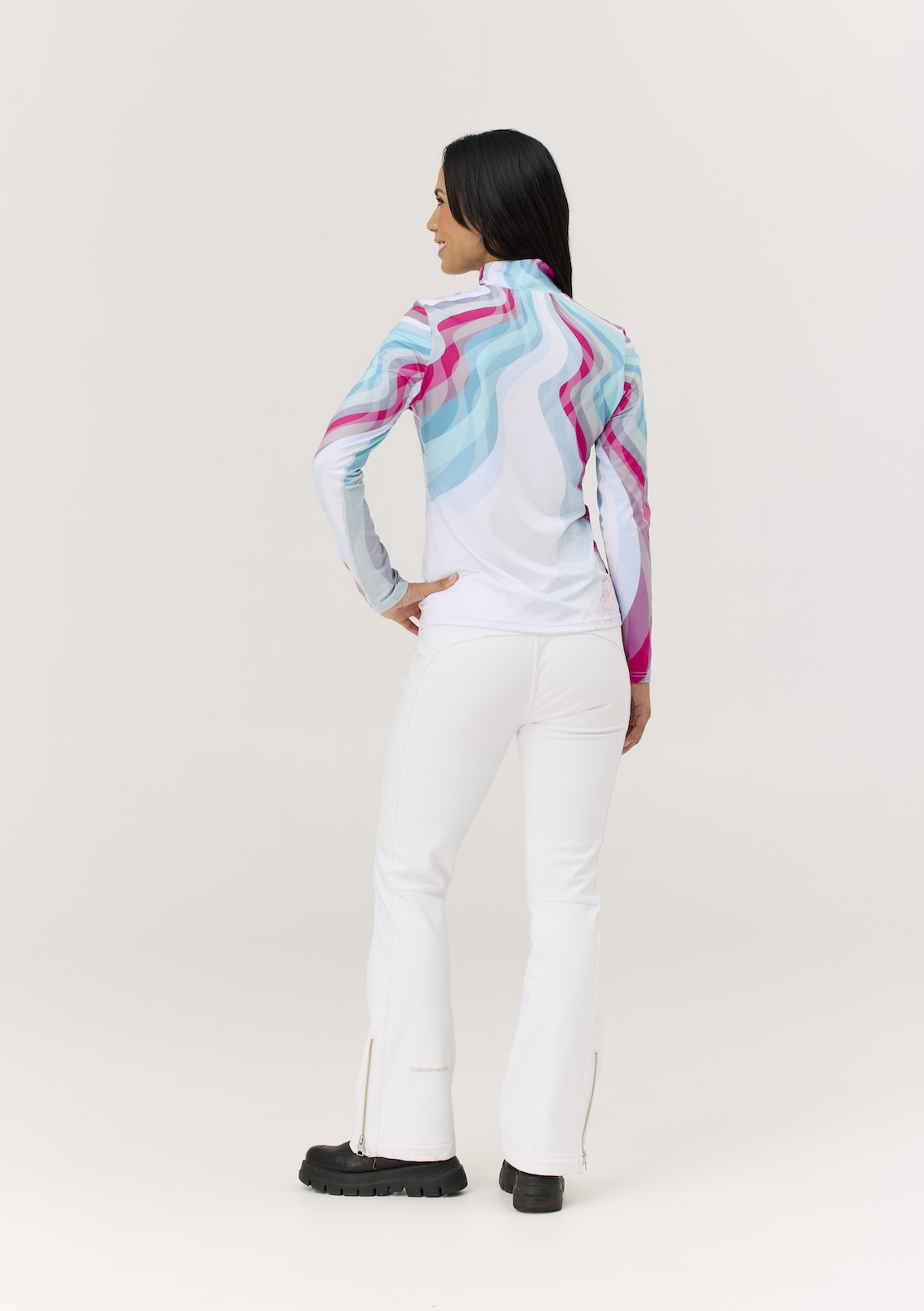 She Racer is a zip first layer turtleneck, breathable and wicks moisture...comfortable on the slopes or Apres ski.