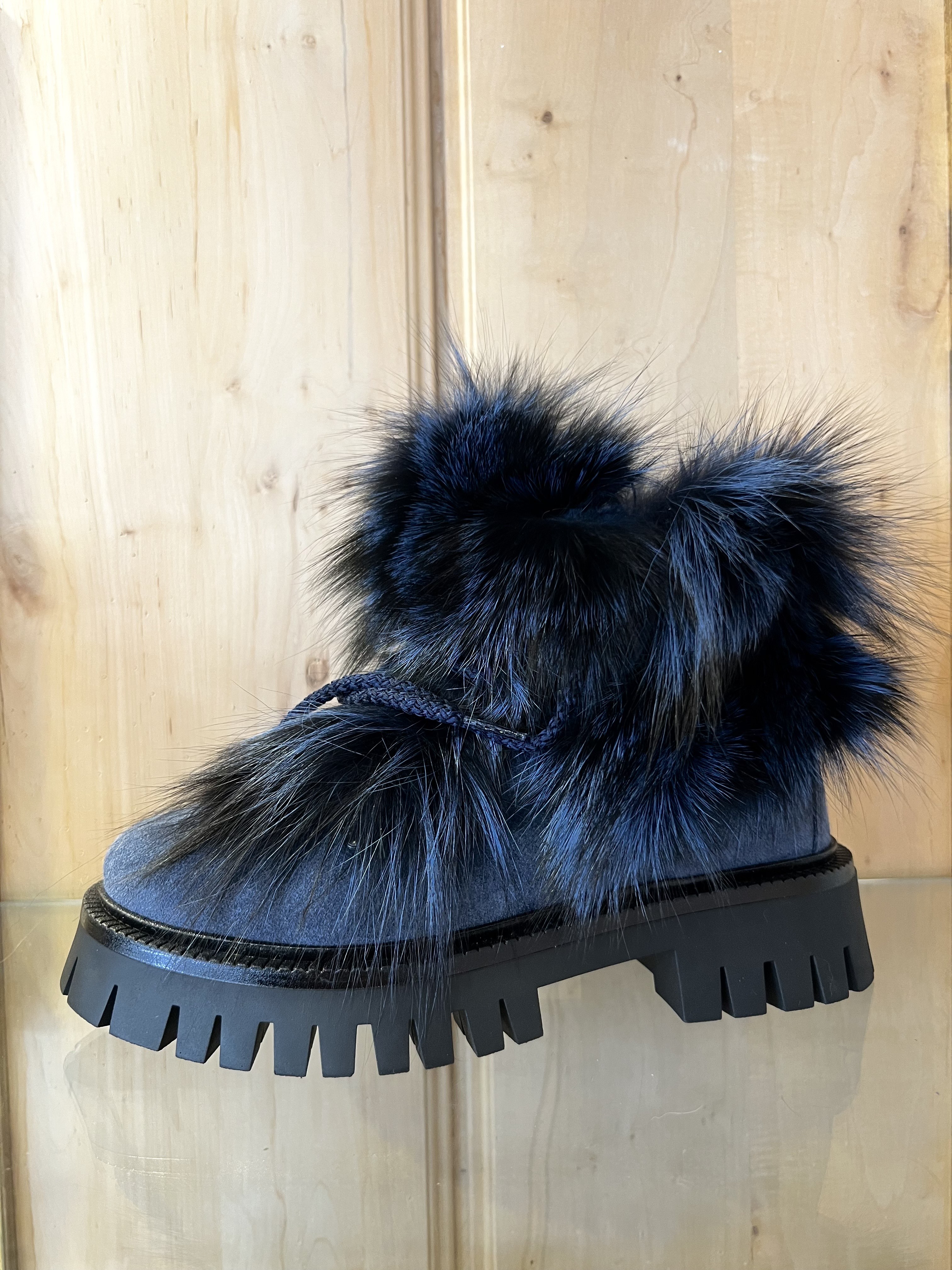 Agordina is a fur trimmed boot with blue fur tipped in black...great with jeans! Made in Italy