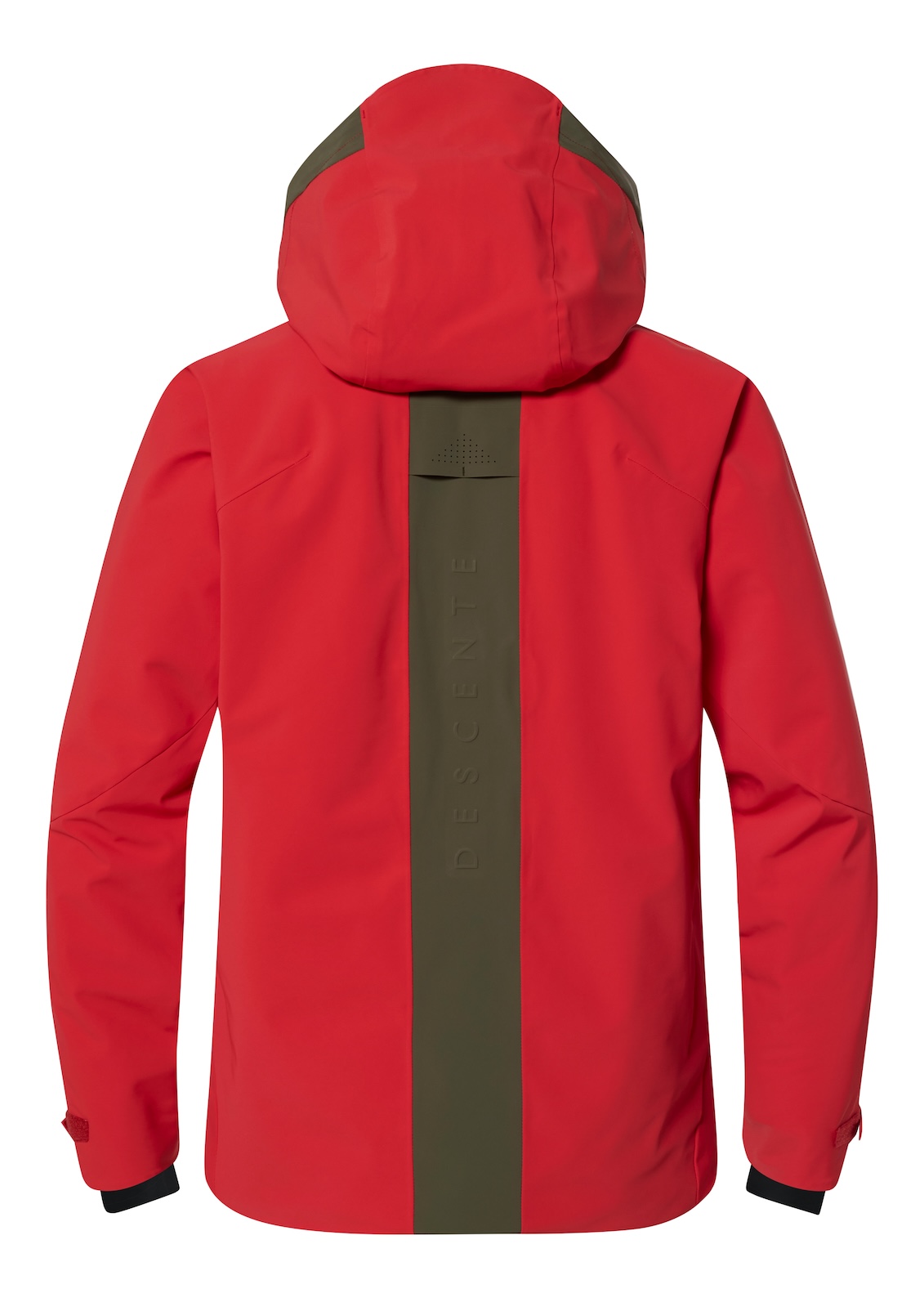 The Swiss insulated jacket in red is the exact replica with all of the Swiss team sponsor logos...waterproof, breathable and features Descente's dual front zip adjustment