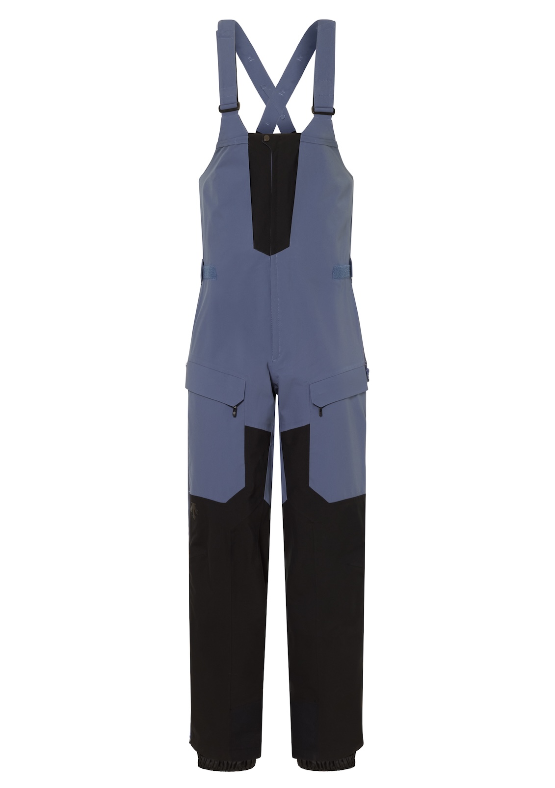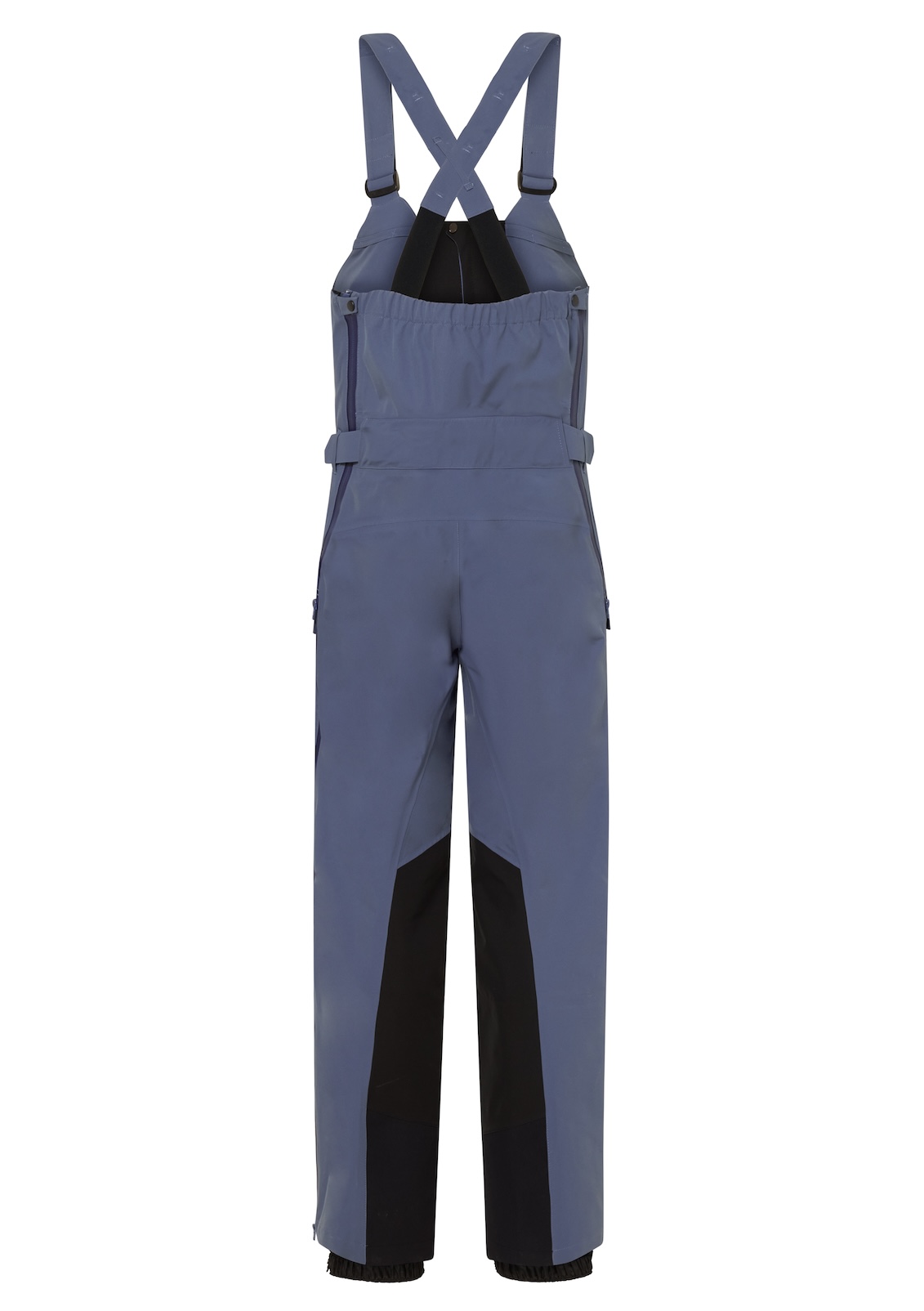 The 3 layer hard shell bib has side zippers from the chest to the waist to make it easy to put on and off...4way 3L stretch, waterproof and breathable, edge guards, waist adjustment, ventilation are many of the bib's features