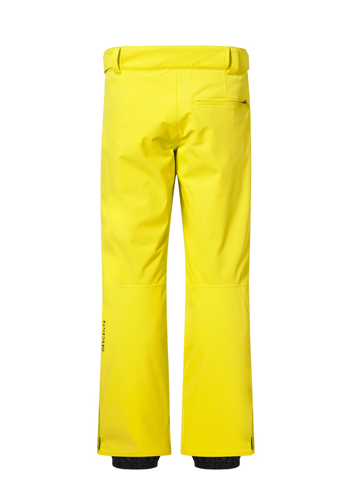 The Swiss pant is 4way stretch, waterproof, breathable bib with waist adjustments and removeable suspenders. They have an inside leg edge guard in all of the Descente colors.